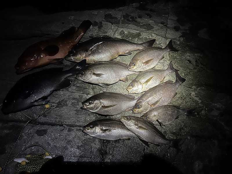 こんばんは~(^^)/先々週の釣行です。ちょっと風が気になりましたが、イサキの情報を聞けばウズウズ!海を見ながら行きましたが、Tポイントは波静か。しかし行きたかったのはKポイント、一度ポイントまで行きましたが風が強く竿出しもせずに断念して・・・車に戻ってTポイントに移動です。暫く海を眺めてましたが波も問題なく風も穏やかでした。ちょうど干潮だったので、沈み瀬を確認しながら狙いを決めます。そうこうしていたら海都さんが到着され、話をしながら釣り開始です。最初は遠投しながら様子見。すぐに30クラスのコナガが釣れます。釣り開始2時間ほどしてから仕掛けは遠投しながらも、本命ポイントにもパラパラと撒き餌をします。今回は棚の調整に苦労しました、ちょこちょこ変更しても結果に結びつかない。たま~に30クラスのイサキは釣れますが単発なんです(^^;)イサキが5枚ほど釣れたところで仕掛けを変更、本命ポイントを攻め始めました。すると、クロ、イサキ、キジハタと40クラスが釣れ始めます。たまにチヌも釣れますが痩せてない。23時頃、も~これ以上は釣れても運べないって事で、途中から海都さんの横に移動しました。しかしこちらでも数匹釣れて、チヌとクロをリリースしながら入れ替えです(笑)そして結果。一番大きなイサキは45クラスでした(^^)・・・ムフフ・・大満足(^^)/そして自宅で。早速捌き始めます。ま~イサキはどう料理しても美味しいので楽しみです。嫁たちはカメラの向こうで食べたがってましたね~(^^)梅雨に入ると暫くはお休みなのかな?梅雨明けは別のポイントに移動して、今度からはアジが楽しみですね!九州釣行記ランキング