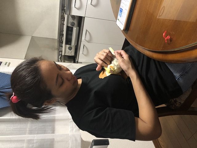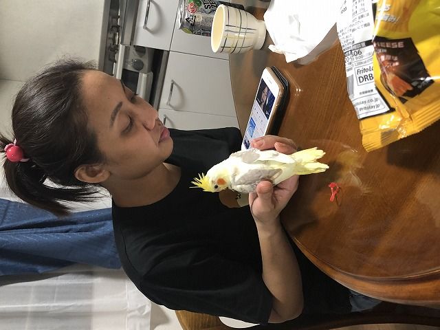 最近はいつも人と一緒、飛んできて肩に・・・寄り添うようにおとなしいです(^^)