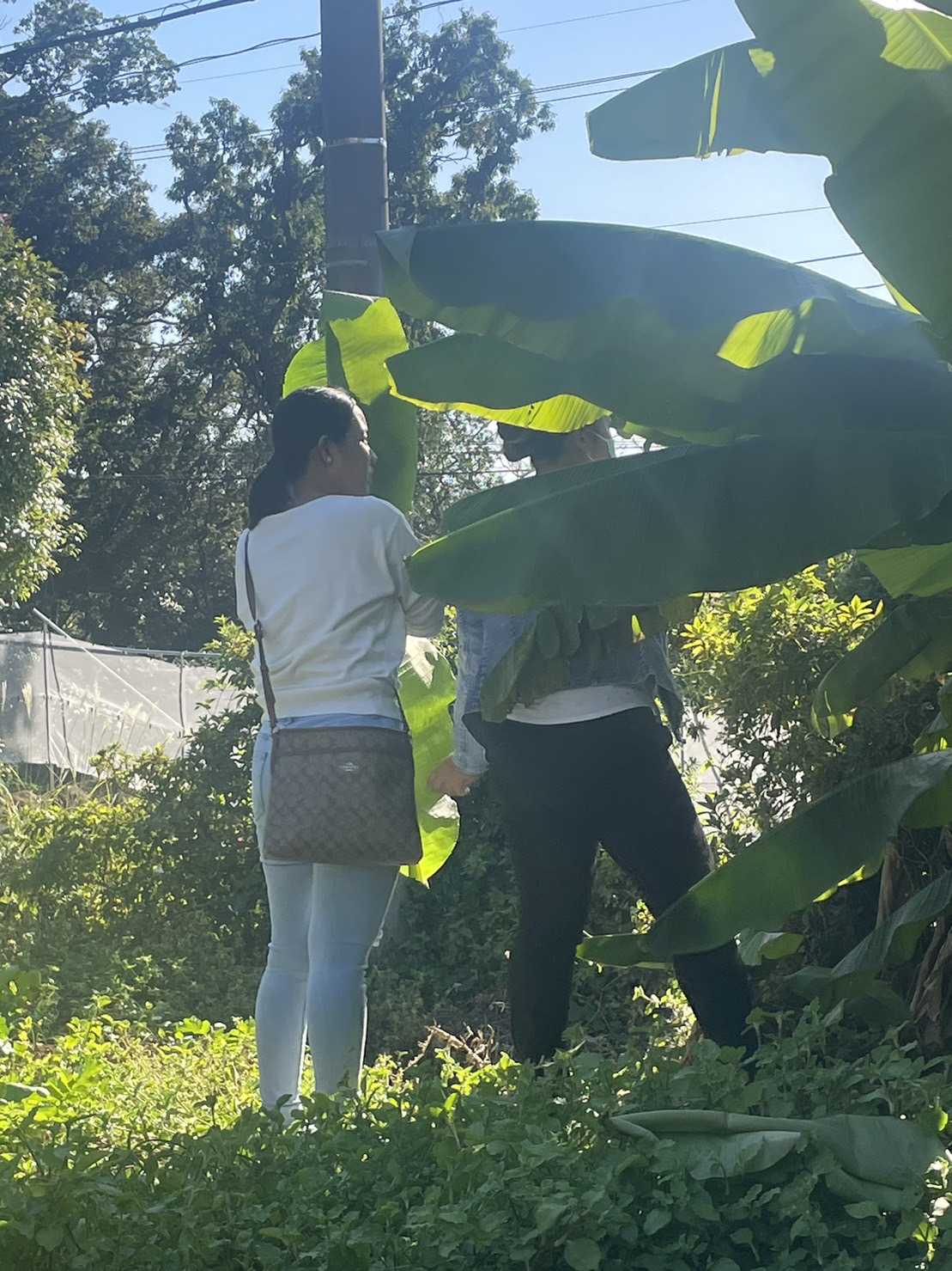 ミカン飼った後お店の後ろの畑にバナナの木を見つけ、葉っぱを頂きました。