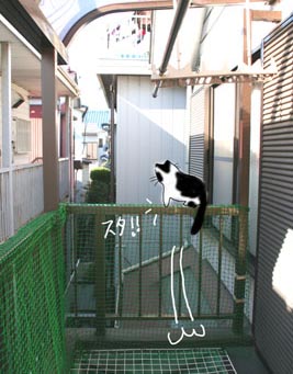 やっと、何とか復調してきました。健康だけが取り柄なんだが、 風邪が長引いて・・・・・・・・・・・年なのかねぇ・・・。 うちのお坊ちゃまは、私が寝ていれば甘えて布団に潜り込み、 スリスリしながら一緒に寝ていたんだけどね・・・・どうやら、退屈しまくっていたらしい。 昨夜、テレビを見ていたら、屋根の上で「どん!」と音がした。 「えっ?!なに?」 「まさか・・・・・・・!?」ええ、そのまさかでした(;´Д`)ノ 実録は出来ませんでしたので、回想シーンでお楽しみください。 「うっそ!」「まじかよー(;´Д`)ノ !」 「こっち来なさい!」の声にも、反発する黒白。 しかし、足下はずりずり滑って生きた心地がしない。 結局、マタタビ臭に誘われて来たところを、引きずりあげられました。 まったく・・・・・・・・・・・・・・・・・・(ー_ー#) そして、今朝、性懲りもなく手すりに登ったところを捕獲! もう、フェンスを貼るまでベランダ禁止!(▼▼)