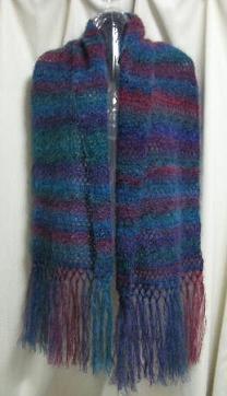 今日はとっても寒~いです。昨日から、ちょっと頑張って・・・やっと出来た~~サイズ 長さ(フリンジ抜き)147cm×幅39cm フリンジ 26cm模様はこんな感じ。一番面倒だったのが・・・このフリンジ!!参考本は・・・↑この中の「段染めモヘアストール」本だと、もっと薄いグリーン~ベージュだったのですが・・・ちょっと、色が濃すぎた?!かな~でも・・・ロングピッチの段染めって、玉の時と、編んだ時とで、随分、イメージが違うな~~と。思った以上に、素敵な色合いになったので、