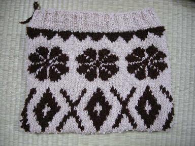 今日も寒い一日でした。お出掛けしようと思っていましたが・・・あまりの寒さに断念。引きこもり~~してました。前に娘に「斜め掛けのカバンが欲しい~~!!」と言われていたので、娘の希望を聞いて、ちょっと前から編み始めました。輪編みで、しかも編込み!!とりあえず、本体部分が完成しました。編込みなんて、何年ぶり~とっても面倒くさい!!でも、カワイイ、カワイイ?!娘のため、と・・・使った糸は、以前にピエロさんのオークションで購入したサンプルセットの中の糸。右のピンクはループが混じっています。左の茶色は「プードルの毛」みたいな糸。あとは、斜め掛け用の紐を編んで、内布つければ出来上がり~編込み&輪編みに疲れたので、鈎針にちょこっと浮気。マフラー編んでみました。こちらは、自分で引きそろえた糸を使用。6号針で編みました。着実に在庫の毛糸を消費しているのが、なんかとっても嬉しい!!減った分、また買ってもいいかなぁ~