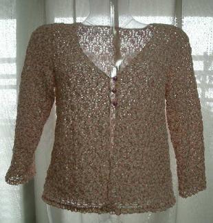 一体いつから編んでいたのか、忘れてしまうくらい前から編んでいた、レース位細い糸のカーディガンが、ようやく、ようやく、完成しました。曇り空なので、かなり画像が暗いですね~すみません・・・前のボタンははんぱビーズ(コップ2杯)この中に入っていたパープルのビーズを使いました。模様はこんな感じ。小さいパイナップルがいっぱいです。参考本は上質のレース糸で編む「優しいかぎ針あみ」日本ヴォーグ社やっとこさ、完成です。時間をかけちゃうと、手加減が変わるから、微妙に左右身頃やら袖やら、大きさが違います・・・まぁ、許容範囲ということで。