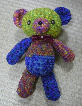 今日も暑かったです・・・なんだかんだと、ノンビリできず・・・それでも、どうにか、完成しました~~こんな感じのショールになりました。コットン系の糸を引きそろえたので、まだ、使えますね・・・そして・・・時々、参加しているフェリシモのHAPPY TOYS PROJECT今までは、布でつくるばかりだったのですが、今年はあみぐるみに挑戦しました。第一号です。あまり糸を使ったので、白糸が顔部分で終わってしまった・・・それでも、まぁ、なんとか可愛く出来た?!一応、クマさんです・・・まだ、何体か、出来る限り作ろうと思っています。