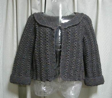 今日は、一日、おうちでノンビリ出来ました。お昼寝までしちゃって・・・せっせと編み編み~~ボレロ?カーデ?区分けは良くわかりませんが・・・結構、あったかいので、今の季節、羽織物として使えそう~~胸元はリボンになっているのですが、適当な物が見当たらないので、明日にでも、また、探してみます。あ・・・今、気付いた・・・飾りのポケットフラップが付いてない・・・と言う事は、まだ完成じゃないですね・・・これから、急いで作ります!!参考本は「毛糸だま 2008年秋号」No.139 日本ヴォーグ社使用糸は、以前購入した毛糸・手芸・コットン 柳屋さんの福袋に入っていた、ジェームスディーン ZEROツィードコチラの、5番です。オレンジと、エンジのネップが入っていて、最初はどう???って思ったけど、編んでみると、以外に目立たず、単調なグレーとはまた違った感じで、なかなかでした。ご訪問ありがとうございます。励みになりますのでポチっとして頂けたら嬉しいです。