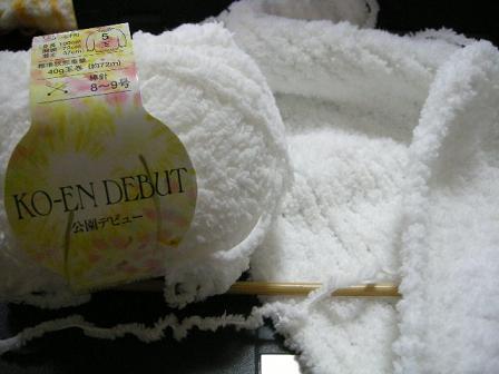 今日は午前中から娘とお買い物に行きました。靴やらブーツやら買わされて・・・お財布からお金が飛んでいく~~帰りにちょっと、ユザワヤに寄り道。なんか、お買い得な毛糸があるかなぁ~~と、思っていましたが、結果は「何にも無し!!」ワゴンの中の安売り毛糸も、あんまり魅かれる物がなく・・・さみしい~~そんな中、展示してあったホワホワのマフラー。娘が「わ~~いいなぁ~~」そっか、そっか。帰ってきてから、早速、在庫の毛糸を引っ張り出して・・・1玉終了!!こんな感じです。長さが40cmくらい。って事は、3玉編んで120cm。5玉あるからフリンジも付けられるかな。使用糸は、アベイル・コマドリさんの福袋に入っていた、「公園デビュー」という糸です。ナイロン100% 吸湿・帯電防止加工 がしてあります。手触りは「ホワホワ~~」真っ白な糸です。福袋、まだちょっと残ってますね。福袋 第2弾 NO.3-A福袋 第2弾 NO.6-A福袋 第2弾 NO.7-Cご訪問ありがとうございます。励みになりますのでポチっとして頂けたら嬉しいです。
