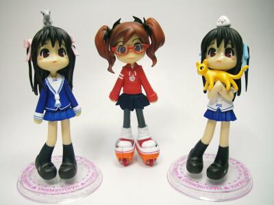 昨日・一昨日のクリスマスの日、家を留守にしていた間に待ち焦がれていたピンキー3体が届きました。フルーツバスケットの透くん2体&エアギアのリンゴちゃんピンキーです。うわわ、やっぱり現物は写真で見るよりずっと可愛いですねぇvv特にこれらは今までのピンキーの中でも、一番小道具に凝っているのではないでしょうか?特にお気に入りの小道具は猫とメガネです。メガネのレンズがもうちょっと透明度が高いと良かったのですが、まぁあまり贅沢は言っちゃいけませんね。でもリンゴちゃんのツインテール左側がゆるゆるですぐ取れてしまうのはいかがな物かと(汗)。後で透明接着剤をジョイント部に薄く塗って補強しようっと。それにしてもクリスマスに届くような発送をしてくれるなんて、なかなか粋な事をしてくれますね♪透くんの腕にちゃんと猫が納まるのが嬉しい。ちゃんと猫も自立します。