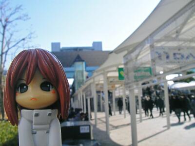 大きな斉藤さんちの冬祭典に行って来ました。一般参加だったので昼頃、駅に到着。するとロータリーに「AKIBA」行きのマイクロバスが停まっていて、その横にはメイド服を着たお姉さんが3~4人+ギャルゲーのキャラっぽい着ぐるみ(?)が看板を持っていました。「何事?!」と思ったら、何かテレビの撮影っぽかったです。夏冬の祭典にはどこか必ず取材しているものですが、ここまで大々的に撮影しているのは、はじめて見ましたよ。びっくり。何とかお目当ての本が無事GET出来たので、満足。ただ、第二の目的である自分好みのビーズアクセサリーや小物が、あまりの人ごみの為ほとんど買えなかったのが残念です。唯一買ったのは一目ぼれしたピンキーサイズのケーキとチョコレートでした。ちなみに今年の最後の最後に屋外おでかけピンキーに挑戦。緊張した~(笑)。後に見えるのがとっても大きな斉藤さんちです。