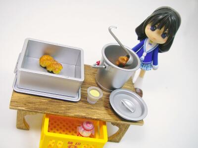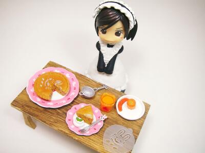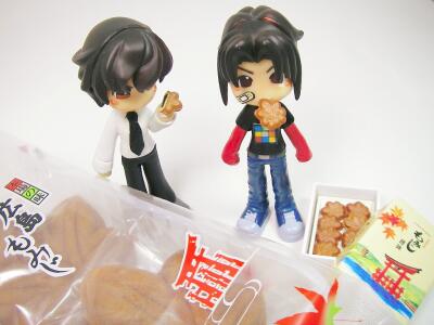 先日コンビニで、もみじまんじゅうを買ってきました。何故か急に食べたくなるんですよねー。でもちょっと甘いので、飲み物と一緒にいただくようにしています。ちなみに、もみじまんじゅうに合う飲み物といえば・・・・ちょっと濃い目に入れた緑茶・大き目のマグカップに入れたホットミルク・冷たく冷やしたシャンパンえっと、最期のシャンパンですが別に三段オチをねらった訳ではなく、本当にもみじまんじゅうに合うんですよ!・・・というか、あんことシャンパンの組み合わせは絶妙だとCLAMPの猫井椿さんもおっしゃっています。でもこの組み合わせ、お酒とあんこ両方好きな人にはお勧めしますが、そうでない人にはちょっとね(汗)本物もみじまんじゅうと。ついでにミニチュアセット写真。