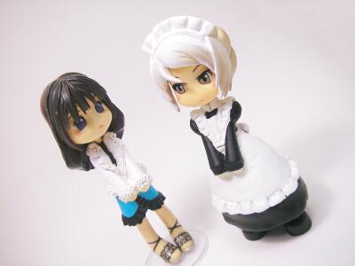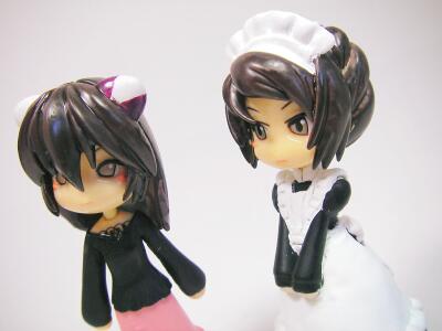 先日のアヴリル髪を改造して、メイドさんピンキー用の髪型を作ったものを完成させてみました。結局組み合わせしやすいよう、ダークブラウンにしてみたのですが、これが想像以上に良い感じになったのでしばらくメイド服と組み合わせて、飾っておこうと思います。ちなみにレースカチューシャ付き前髪と、マキ後ろ髪でもなかなか良いかと思ったのですが、微妙に浮いている感じがしてちょっぴりガッカリでした。うー、最強の組み合わせだと思ったのになぁ・・・。あーあ。やっぱりPキャラは、他のパーツと組み合わせしにくいのですね。話は変わって、3年前に会社を辞めた友人から、何ともおめでたいお知らせを受けました。何と地元の某カラオケ番組にて、見事優勝したそうです!うわー、おめでとう!何回か出場はしていたけど優勝は初めてなので、本当によく頑張りましたよ。よかった、よかった♪朝帰りしてきたお嬢様を叱るメイドの図。・・・いや、ただ並べるのもつまらないので小芝居させてみました(笑)そしてマキ後ろ髪との組み合わせ写真。ちょっぴりずれていて、どこかおかしい(汗)
