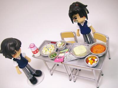 先日スーパーに行った時に、発見してしまったので買ってみました。リーメント「みんなでいただきますっ!」食玩類を買う基準は主にピンキー撮影に使えるかどうかで選んでいるのですが、これは懐かしさに駆られて買ってしまいました☆でも給食って、地方によって献立内容がかなり違いますよね。揚げパンとかミルメークなど、見た事も聞いた事も無いという人がいると知った時は、かなりのカルチャーショックを受けましたよ(笑)そういえば数ヶ月前に行った、秋葉原のカラオケボックス。何か食べ物を注文しようとメニューを見たら、なんと給食セットという物がありました!ちょっと興味はありましたが、夜遅くに行ったのでその時は断念してしまいました。やっぱり頼んでみればよかったなぁ・・・(後悔)あ、3月になったのでTOP写真とデザインを変えてみました!ちょっとだけ早く春気分♪学校の机に乗せてみました。・・・でかっ!もう一回り大きい机に載せてみましたが、それでも大きいです。おまけ。いちご牛乳パックに書いてある文字。ちゃんと読めるのがスゴイ!