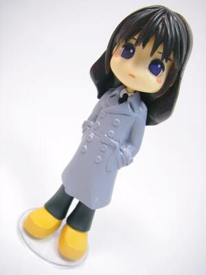先日のトレンチコートを仕上げてみました。色は悩んだ末に定番のグレー、ネクタイは黒ですよ。茶色でもいいかなぁ?と思いましたが、この色なら春用コートでも通用するし。思いっきり男性用ですが、あえてお嬢様の葵に着せてみたりして。うーん、可愛い子は何を着せても可愛いですねv(←親バカ)話は変わりますが、「涼宮ハルヒの憂鬱」に続いて「灼眼のシャナ」のピンキーも出るそうですね。・・・と言っても、この作品は読んだ事は無いのですが小説の表紙から察するに、またもや制服系みたいですねぇ。個人的には制服より、普通の女の子が着る服みたいなのが欲しいのですが・・・どうなんでしょうか?