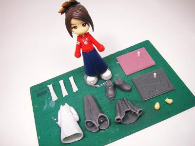 昨日作り始めたトレンチコートとスーツのガレージキット。とりあえず目立つ気泡のなかったコートに、サーフェイサーを吹き付けてみました。スーツの方は、襟にちょっと目立つ気泡があったので時間が出来た時にでも、アルテコで埋めようと思います。あと、このまま組むと前傾してしまうので、足と腰のジョイント部を何とかしないとなぁ・・・。うーん、やっぱりパーツ数が多いと、ちょっと手間が掛かるみたいですね。まぁ、それを何とかするのが楽しいんですけど☆そうそう、このスーツ。なんとインナー部分が替えられるのです!付属しているのは「ネクタイ+ベスト」「ハイネック」「カジュアルシャツ」の3種類!自作すれば、更に色々バリエーションが楽しめそうですよ♪ああ、早く完成させたいなぁvちなみに右上の四角いのは台座です。この台座だけは、すでに完成させてみました。