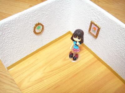 一昨日完成させたピンキー&ミニチュア撮影用の部屋にちょっとだけ彩りを足しました。・・・といっても、壁に模様付きテープを貼っただけですけど。小洒落た感じを出したかったのですが、何かどうもイメージが違うので、何か良いテープを見つけたら貼り直そうと思います。とりあえず明々後日の、S.C.C画材売り場で見つけてみようかな?あそこは割と掘り出し物があるので、行くと必ずチェックしています。話は変わりますが、父が出かけてしまったので晩御飯はピザーラを注文しました。今回初めてサイドメニューのパスタを頼んだのですが、これが想像以上においしくて驚きました!メインのピザもおいしかったけど、パスタの方が好みでした。でもサイドメニューは単品で注文出来ないんですよねー。残念!