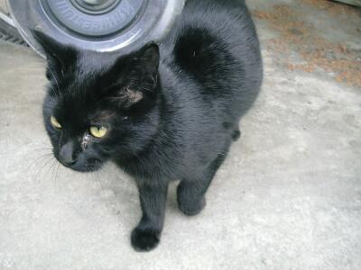一昨日のブログにちょこっと書いた黒猫ちゃん。ようやく写真が撮れたのでアップします。でもやたら動きまくるので、まともに撮れたのは一枚だけです。一応お出かけピンキー写真も撮ってみましたが大失敗ですよ・・・(笑)この黒猫ちゃん。ヒゲから肉球、鼻の先まで真っ黒!あ、目の色は金色です。そっと近づくとにゃーにゃーゴロゴロしながら、ひたすらスリスリしてきます。しゃがむと膝に手を乗せて、鼻つん挨拶をしてくれますvか、可愛い・・・(ほわん)ところが今日、昼間自分の部屋にいたら、近所の子供らが3人ほどうちの庭にやってきて「ねこー、ねこー!ねこいないのー?」と、黒猫ちゃんを探しにきました。一瞬飼い主かと思いましたが、どうやらそうではない様子。単に猫を見かけたから、追いかけてきただけのようです。黒猫ちゃんは子供たちが去るまで、ずっとどこかに隠れていたようです。頼むからいじめないでっ!猫は子供という生き物が大の苦手なの!!特に大声を出して跳ね回るような、やんちゃな子供は確実に嫌われます。猫はおっとりしている人間が好きなのよー。もうすぐGWで連休なので、それまで何とかしたいですねぇ。せめて空ちゃんとの相性が良かったらなぁ・・・。一応網戸越しに会わせてみたけど、オス同士のせいかあまり良い対面はしませんでした。ううん、残念!