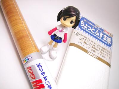 昨日予告した通り、仕事帰りに蛍光灯を買ってきました。これが意外に大きくてちょっと大変。自転車のカゴが大きくて助かりました。ついでに電気屋さんと、向かいにあるホームセンターでいくつか買い物してきました。まぁ、蛍光灯が大きかったので、細かいものしか買えなかったのですが。その中に、食玩撮影小部屋の材料も買いました。床素材シートと、壁紙に使えそうなふすま紙だけですがこれをダンボールに貼り付けるだけで、ちょっとした部屋になりそうです。さっそくGW中に作ってみようっと♪それにしても、新しい蛍光灯は明るいですねぇv失くしてわかる日常生活の大事さを実感しました。「当たり前 と 思わずに 感謝しよう」(byかとち)