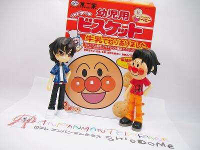 先日潮留に行った時、アンパンマンテラスで買った自分へのお土産をアップするのを忘れていました(汗)そんな訳でお土産画像です・・・と言っても、買ってきたのは幼児用ビスケットと、ピンキー用のアンパンマンお面のみですが。・・・すみません、お面はアンパンマン顔型ボタンです。後の糸を通す部分を削って、ヤスリかけて、両面テープで固定しているだけです(笑)写真は撮れませんでしたが、店の上の方に飾ってあったやなせたかし先生が描いた、いかにも小悪魔メイクのドキンちゃんにドキドキしてしまいました(笑)考えてみれば、ドキンちゃんは小悪魔そのままの姿ですよね。どうせならコウモリの翼もつけちゃえばいいのにー☆