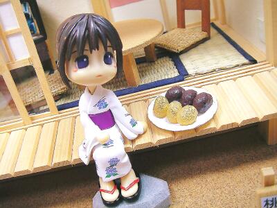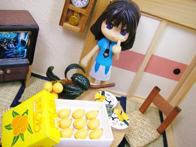 先日、ヒッパレ舞台お泊りの時に、友人から「うまいもん市場」の『茂木びわ』をいただきました♪ありがとうございまーすvこの「うまいもん市場」シリーズは2005年物で、今ではなかなか手に入らないんですよね。うふふ、貴重品ですよ。びわは何となく和の雰囲気があるので、和式ドールハウスにて撮影してみました。うーん、そろそろ畳部屋用のピンキーお座り足を作りたいですねー。立ちポーズだけじゃつまらなくなってきたし(汗)話は変わりますが、最寄り駅からの帰り道に夕立に遭いました。昨日よりはずっとマシでしたが、それでもびしょ濡れ状態(汗)梅雨が去った途端、夕立とのバトルが始まるので、夏は油断できませんね★くっ、負けるもんかっ!!