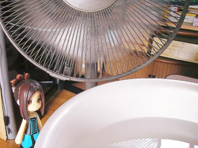 昨日予告した通り、一日引き篭っていました。わたしの部屋は、家の中で2番目に暑くなる場所ですが、冷房器具は扇風機しかありません。その頼りの扇風機も、部屋の温度が高過ぎると温風を吹き付けてくる、恐ろしい機械になります(笑)そこでとある小説に書いてあった、扇風機を涼しく使うアイデアを試してみましたよ。それは扇風機の前に、水を張ったバケツまたは洗面器を置くだけ、というもの。つまり冷風機の原理ですね。これがまた、結構涼しくなるんですよー。氷を入れればもっと涼しくなるだろうけど、氷は両親が仕事場に持っていく飲み物に入れて使うので、そんな贅沢な使い方は出来ませんけどね(笑)そんな訳で「部屋に扇風機しかないよぅ(涙)」という同士の方は、ちょっとお試しくださいませ☆水をこぼさないよう、気をつけてくださいね♪