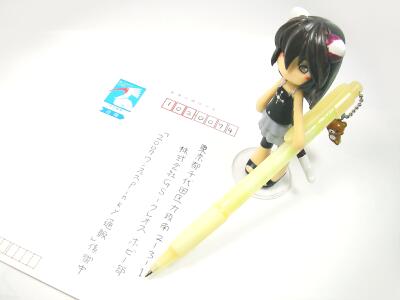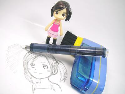 先日の夏祭典で、前からちょっと気になっていたペン型電動消しゴムという物を買ってみました。わたしの場合、最近カラーはシャーペン画をスキャンしてからPCで色を塗っているので、出来るだけ余分な線は下書きの時点で消しておきたいんですよね。しかし普通の消しゴムだと、余分な所まで一緒に消してしまうのです。そこで細かい所を綺麗(ここがポイント)に消せそうだという理由で購入したのです。さっそく使ってみましたが、思ったよりも使い勝手が良さそうなので、ちょっと嬉しいですvまだ慣れていないから、強く押し付けすぎたりして線を消し過ぎたりもしますが、慣れればきっと手放せなくなりそうな感じですよ☆欠点は消しゴムのカスが細かすぎる事ですね。手で払うとちょっとまとわり付くので、ミニ机上クリーナーと一緒に使っています。これで机の上はいつも綺麗でいられますね♪