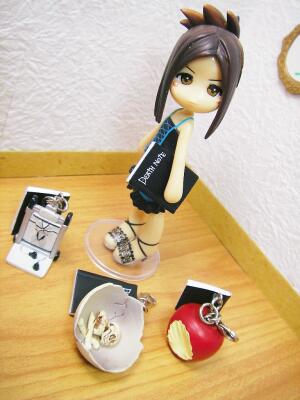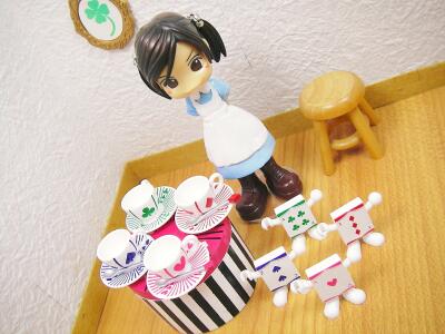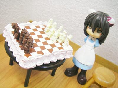 昨日、久しぶりにスーパーに寄ったら以前から気になっていた食玩「おとぎの国のお菓子」が置いてあったので、ひとつ買ってみました。出たのは一番欲しかった『アリスのチョコレートチェス』でした!わーい♪・・・というか、これは他のものと比べてどっしり重い、というのを聞いていたので、一番重量のあるものを選んだのです(笑)ピンキーにはちょっと大きいけど、出来がすごく良いです。チェス盤ケーキはもちろん、アリス登場人物チェス駒が細かい!実際チェスをするほど数は入っていませんでしたが飾っておく分には十分だと思います。話は変わりますが、ワンフェス限定よいこの武器セット通販が開始されましたね!とりあえず1セット位は欲しいので、申し込みはしておきたいと思います。その前に往復はがきを買ってこないとー!!