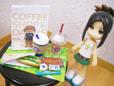 「ダックス店長のコーヒー屋さん」の続き。もうひとつの方は『うきうきランチのテイクアウト』でした。ホットドッグがこれまたリアル・・・というか、ダジャレでしょうねぇ(笑)写真では見えませんが、ホットドッグのパンに、ダックスフントの絵(?)が描いてあります。でも一番細かいのは、チョコレートのパッケージです。特に裏の表記!商品名は「ダックス店長のコーヒー屋さんチョコレート」説明文とか、原材料とか、栄養成分表示までちゃんと表記されています。すごい!ちなみに賞味期限は「無期限」でした(笑)こういう細かい仕事に、めちゃくちゃ弱いんですよねぇ☆