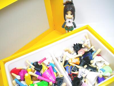 上半身ピンキーパーツ入れにしていた、卓上サイズの小さな引き出し。とうとうパーツが入りきれなくなってしまったので、先日新潟で買ってきたお土産のお菓子箱に引越しさせました。これもまたすぐにいっぱいになっちゃう予感がします・・・。スーツ目当てで買った、オーハラ&ミキミキのパーツがたくさん余っているので、これで何か改造できないか考え中。でもしばらくは10月のオンリー準備で、ピンキー改造は出来ないと思います(汗)ところでモンスターハンターピンキーが、ぼちぼち通販予約開始されていますね。服装が服装だけあって、普通の服との組み合わせはもちろん、改造にも使い難いので3種全部買うかどうか迷っています。もう少し詳しい資料がないと何とも言えません(汗)あ、でもモンちゃんだけは絶対買いますよ!アイルーかわいいよアイルー。