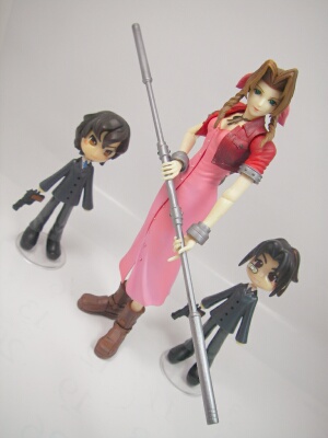 先月予約したファイナルファンタジー7プレイアーツ エアリスが到着しました!思ったより大きくて驚きましたが、さすがに綺麗です~vお顔も綺麗ですが、何と言っても体型が自分好み♪スリムだけど、ちゃんと出るところはある程度出ていて足が細すぎない所が良いです☆・・・あまり詳しく書くとマニアックになってしまうのでこの辺でやめておきます(笑)ロッドもすごく出来が良いです!首と手足が可動式になっているので、簡単なポーズをとらせる事が出来ます。スタンドも付いていますが、自立させる事も可能です♪なので、エアリスに似合いそうな食玩を持たせて飾っておきたいけど、場所が無いのでどうしようかと思っています。下手な所において置くと、猫に叩き落とされる羽目になりますしね(汗)やっぱり本格的に大掃除しなくちゃダメかもなぁ(当たり前)
