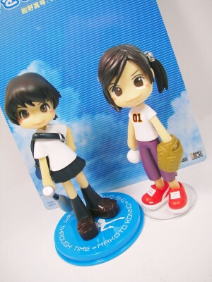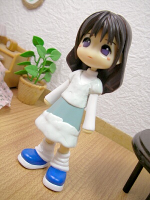 もしかしたら今月中には来ないんじゃないかと危惧していた「時をかける少女」紺野真琴ピンキー、無事に到着しましたよ!やっぱり写真で見るより実物はかわいいですね~♪顔も可愛いし、ちょっとはね気味の髪型も良い☆特に感激したのは小道具類ですねっ!登校用ショルダーバッグを背負った時の形がリアル!グローブはちゃんと左手に装着できるし、ボールは手に持たせる事もグローブに収めることもできるし、バッドを持たせるとすごくカッコいいし!バッグに付いているマスコットも付け外し可能なのも良いですね♪友人の分も合わせて3人頼んだのですが、その中のひとつのバッグに、マスコット取り付け用の穴が開いていなかったので「あらあら」と言いながら自分で開けてみました(笑)もし頼んだのが一人だけだったら、ちょっと戸惑ったかも知れませんね☆複数頼んでおいてよかったー♪さてさて、次は通学路バージョンですね!楽しみ~♪