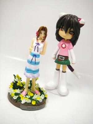 たれにゃんこさんのもとからFF7 TRADING ARTSのエアリスフィギュアがお嫁にきましたvわたしがエアリスLoveという事で、わざわざ送ってくれたのです!ありがとうございますーvピンキーよりもちょっと小さめのフィギュアですが顔がすごく綺麗!何といっても、笑顔というのが良いですよ~vワンピースの肩の所とサンダルに描いてある花の模様が本当に細かいのにも感動しました。足元がお花畑というのも、エアリスらしいですよね!うちのエアリスピンキーの隣りに並べて、愛でようと思います(笑)本当に素敵なプレゼント、ありがとうございましたーv