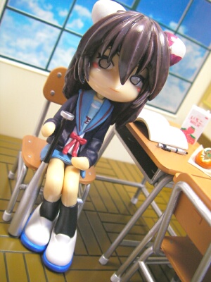 今日は朝からとても暖かくてすごしやすい一日でした。しかも昨夜の疲れが抜け切れなかったらしく、仕事中とても眠くて参ってしまいました(苦笑)スタンディングライブの次の日は、お休みにしないとちょっと辛いですね~。今度から気をつけます。ううう。昨日仕入れたネタとか、最近の空ちゃんの悪さっぷりとか、新ピンキーの事とか、色々書きたい事は山ほどあるのですがまだ写真編集していない&眠くてもう限界・・・という訳で本日はこの辺で失礼します(汗)写真は教室ジオラマ撮影の時にアップし損ねたもの。机に座ってバットを持っているという、よくわからない状況写真ですが、何故かちょっと気に入っています(笑)