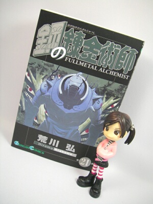 本日は祖母の命日なので、毎年恒例のお墓参りに行ってきました。いつものように車から降りて、ご先祖様のお墓に向かって歩きだしたら、背後から駅伝のラジオ放送が大音量で聞こえてきたのです。一体何事?!と思って後を振り返ったら、音の発信源は父親。ポケットに携帯用のラジオを入れたまま、墓場に入ってきたのです(笑)注意したら即行電源オフしてくれたけど、他のお墓参りしている人に思いっきり見られてしまって、かなり恥ずかしかったですよ~!参ったなぁ・・・。話は変わりますが、昨年最後に買った「鋼の錬金術師」21巻を、ようやく読破しました。この巻から最終章開始という事で、展開がすごい事になってきましたよ~。ああもう、さっそく次の巻が楽しみで仕方ありません!ちなみに今年の初大爆笑は、巻末のおまけ漫画でした☆思いっきり笑いのツボを突かれましたよっ!!