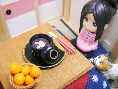 本日はディズニーランドのお隣りのライブハウスにて餅つき新年会ライブに行ってきました!あんなオシャレなところで本当に餅つきするとはなぁ(笑)そのライブの詳しい内容は、例によって音語りブログに書きましたので、興味ある方はTOPのバナーからどうぞ~。それにしても、今日のライブで食べたお汁粉は本当においしかったですv今年初めて食べました。うちは母があまりお汁粉は好きではないので、我が家では滅多に食べる事ができないんですよー(涙)おでかけピンキーはできなかったので、かわりにコタツでお汁粉写真をアップしておきます☆ちなみに猫舌なので、冷めるのを待っている図~(笑)