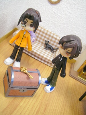 本日は日常用品を買いに行く予定でしたが、体調不良でずっと家に閉じこもっていました。がっくし。そんな訳で(?)今日は久しぶりにネタ画像をアップ。陸「昨日、家の物置で宝箱見つけたんだ♪開けてみよーぜ」海「・・・勝手に持ち出して大丈夫なのか?」カチャカチャ・・・カチリギィ~・・・海「うわっ!!何だこれ!!!」陸「ああっ!権三郎!!お前こんな所に隠れていたのか!」海「ご、権三郎?!(汗)」陸「俺がちっちゃい時に一緒に寝てたぬいぐるみ」海「・・・・・・何をどう突っ込んだらいいのか」すみません、この前ゲットした鍵がこの宝箱に合うというネタだけじゃ物足りなかったので、無駄に2コマ形式にしてみました。でも、あまり面白いネタが思いつきませんでしたよ(汗)ううう、やっぱり体調不良の時はダメですね~★