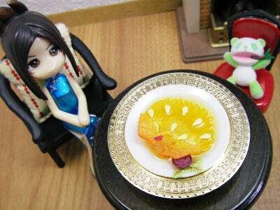 頂き物食玩シリーズ。今回はウーロン茶のオマケになっていた中華料理。正式名称不明の上、どんな料理なのか、材料も何を使っているかわかりません(汗)でも、とても美しくておいしそうなところがすごいと思います。中華すごいなー。