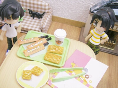 久しぶりに頂き物食玩紹介です。今回はリーメントの「ぷちドーナッツ」の『アップルパイ&チュロス』です。チュロスとアップルパイのサクサク感が見事に出ています。チュロスのチョコレートの所や、アップルパイ断面図もリアルで、本当においしそう♪こういうのを見ていると、段々食べたくなってしまうので、注意しなくてはいけません(笑)でも、どちらかというと冬向きのお菓子のような気がしますね~(特にチョコのチュロス)