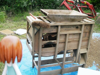 先日の日曜日、家の庭で父親がちょっと珍しい道具を引っ張り出して使っていました。それがこの道具なのですが、何に使う物でしょう↓正解は昔の手回し脱穀機です。ちなみに父は自分で作った蕎麦の脱穀に使っていました。家の片隅にあるのは知っていましたが、今でも十分使えるとは思わなかったので、ちょっとびっくりですよ(笑)あまりにもありえない絵面だったので、父がいない間に思わず撮影。いやぁ、いいネタになった!(笑)