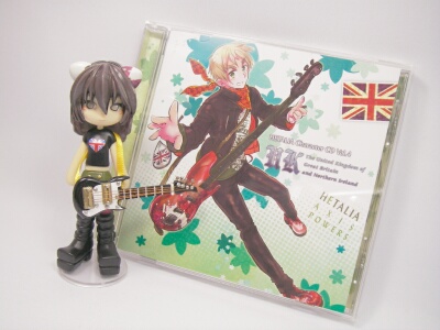 本日発売のヘタリアキャラクターCD「イギリス」を聞きました!視聴で聞いた時は「大丈夫なのかこんなんで・・・(呆然)」と、いった感じでしたが(もちろん2曲目の方)ちゃんとフルで聞いたら、イギリスらしいカッコよさに安心しました。まぁ、歌詞はすごいですけどね(笑)ところでヘタリアのCD、最初は日本以外買う気は無かったのですが、日本の歌声でやられましたねー。色気ムンムンなのに全然やらしくない!むしろ爽やか!!あまりにもわたしの日本イメージそのものだった事に感動したので、他のキャラクターCDを買う決意をしたのでした。それにしてもキャラクターCDなんて買ったの、デジモン以来ですよ(笑)