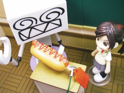 先日(と、言っても結構前)モスバーガーのふにゅふにゅマスコット、という名のミニチュアを買ったら、予想以上に大きくてちょっとびっくりでした。その名の通り、さわり心地はふにゅふにゅしていて、とても気持ちが良いのです。でも、大きさが大きさ故に、ピンキーとは相性が悪いので、どこいつのスズキ氏に写真協力をしてもらう事にしました。そんな訳で、不定期に「モスバーガーふにゅふにゅシリーズスズキさんと一緒」を順々にアップしていきたいと思います。さっそく本日は『モスバーガーふにゅふにゅプレーンドッグ』の写真をアップ。スズキが怒っているのは、マスタードを付け過ぎたから(笑)