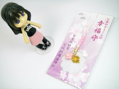 先日、妹が仙台に旅行に行った時に、お土産として桜の形のお守り鈴ストラップを買ってきてくれました。鈴といっても、ささやかな音でチリチリと鳴るので耳障りな感じは一切しません。色は上品な桜色で小さくてとっても可愛いです♪このまま飾っていてもいいかも・・・と思ったのですが、妹が是非付けて!というので、真面目に携帯に付ける事にしました(笑)まぁ、お守りだからいつも付けていないと意味がありませんからね~。
