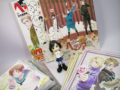 先日、ちょろっと書きましたが、最近とある作品が突然好きになってしまいました。その作品とは、知る人ぞ知る国擬人化歴史コメディ漫画「Axis power ヘタリア」です!わたしが何か好きになる時は、じわりじわりと時間がかかるのですが(熱し難く冷め難い)何故かヘタリアはかつて無いスピードでハマってしまいました。最初はWeb原作を読むだけにしようと思っていたらいつの間にか、コミックス・CD・DVDすべて買い揃えてしまいましたよ。例えるなら、足首だけヘタリアの泉に入ろうとしたのに気が付いたら、肩まですっぽり浸かっていた!という感じですね(笑)だってこの漫画ってば、私のツボを押さえ過ぎですよ!具体的に例を挙げるとキリがないので、止めておきますが。そんな訳で、これからちょくちょくヘタリアの話題が出てくると思いますが、あまり気にせずに流し読みしてやってくださいませ(笑)