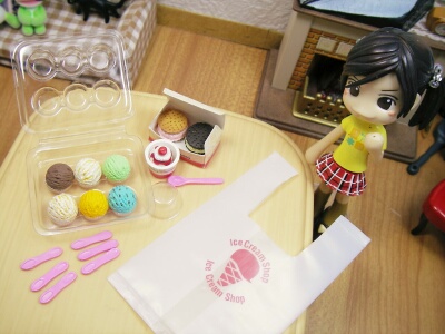 昨日に続き、頂き物食玩紹介です。本日は今の季節にぴったりなアイスクリーム♪ただ、説明書が無いので商品名はもちろんメーカー名すらわからないのです。雰囲気的にメガハウスっぽいのですが、過去の食玩商品ページを見てもこの形のは見つかりませんでした。そしてリーメントの方でも見つかりません。・・・抹消?まぁ、そんな訳である意味貴重なアイスの食玩です。これまたリアルで非常においしそうですが、この6個入ったパックは、早めにお持ち帰りしないと、悲惨な事になりそうですね(笑)