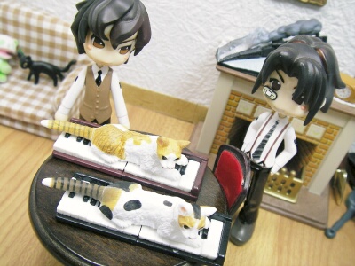 先日、スーパーに行った時にチョコエッグを久しぶりに買ってしまいました。チョコエッグは甘すぎるので、普段はスルーしてしまうのですが、今回たまたま見かけたのが何と猫バージョン!そんな訳で、好奇心から2箱購入。家に帰ってさっそく開けてみたら、ミックス2匹。つまり、色違いのお揃いポーズでした。うーん、まぁいいか。ちなみにこの猫のモデルは、2匹とも華道家の假屋崎省吾氏の愛猫リラちゃんとプリちゃんだそうです。偶然とはいえ、まさかこの組み合わせとは・・・!!