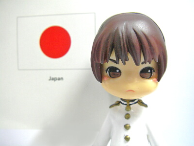 日本ピンキーの新しいお顔を作ってみました。視線真っ直ぐバージョンです。ルイ顔の瞳を茶色に塗って、眉毛を書き足しただけの手抜きカスタム(笑)今までの流し目バージョンでも十分なのですが真正面を見据えているお顔も欲しくなったのでちょこちょこっとね。一応流し目も同じルイ顔のはずなのに、こちらの方がちょっと幼く見えます。ううん、可愛い~v(親馬鹿)ところで、ヘタリア本家ブログにてようやくオランダさんが登場しましたねー。会話にはちょこっと出てきましたが、想像とはちょっと違うお顔でした。もっとゴツイ感じだと思ったのですが、普通にカッコいいですな(笑)でもやっぱり背は高いし、さり気なくおでこに傷があったりして、迫力はありそうです。あんこ・・・もといデンマークも、カメルーンも背が高いので、真ん中にいる日本がすっごくちっちゃく見えて(実際小さいけど)可愛いなぁvまだ一枚絵だけなので、オランダとカメルーンの口調はわかりませんが、いつか漫画に登場させてくれる事を期待しています。