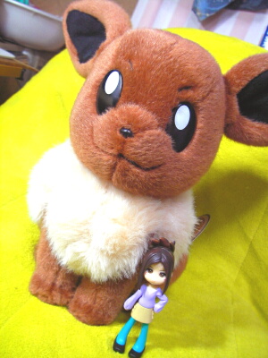 昨日のイーブイグッズの続きです。ネタを引っ張っても仕方ないので、発表してしまいます。実は、等身大イーブイのぬいぐるみを買ってしまいましたー!これがあったので、かなりの大荷物になってしまった訳ですよ。えへへー。イーブイは公式だと体長30センチなのでポケモンの中では小さい部類になりますね。ピンキー3人分ですよー。実はピカチューよりも10センチ小さいのでぬいぐるみとしての大きさはぴったりなのです。そして実は、家にはすでに数年前に発売された等身大イーブイがいるのです(笑)だから先日、買おうかどうか迷っていたのですが家に帰ったら、やっぱり欲しくなってしまい今回お買い上げしてしまいました。さっそく2匹まとめて抱っこしてみたらそのもふもふ具合に、幸福を感じました。あああ、幸せ!買ってよかった~♪ちなみに左が今回の新作等身大で、右が元祖等身大です。並べてみるとわかるのですが、元祖の方がお顔が可愛くて、もふもふさは新作が上です。二つを足して2で割れば完璧なんですけどね。まぁ、どちらもイーブイなのには変わりないので末永く可愛がっていこうと思います♪