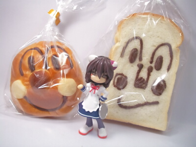 仕事帰り、久しぶりに近所のパン屋で買い物していたら、新商品が!以前、アンパンマンのパンが出ていたというネタで日記を書きましたが、今回は食パンマンの登場ですよ!ちなみに二枚重ねになっていて、中にはチョコクリームが挟まっています。・・・この食パンマンも、偽者だー!!!(アンパンマンの中身はカスタードクリーム)まぁ、美味しいなら別にいいんですけどねっ☆