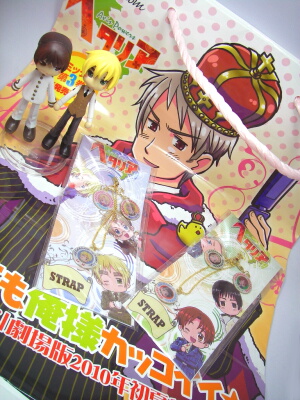 国旗柄ファスナーホルダー、着々と増量しています。今回は本命のギリシャ(やっとですよ!)とカナダ、アメリカ、そして旭旗と神聖ローマの5種類です。これらと一緒に中国も注文したのですがそれは後回しにされたようです(汗)それにしても、まさか神聖ローマの国旗があるとは思っていませんでした。ヘタリアでも国旗が表記されていなかったし、ネットで調べても見つからないので、てっきり無いのかと諦めていたのです。今度はオーストリア、ハンガリー、スイス、リヒテンシュタインあたりを注文してみようかと思います。そういえば来週はDVD6巻の発売日ですね!スイス&リヒテンシュタインの「まるかいて地球」がものすごく楽しみです♪