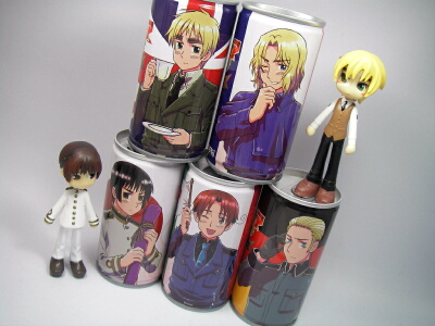 ちょっと間が空きましたが、ヘタリアグッズ紹介の続きです。まだ買っていたのか自分!(セルフ突っ込み)今回はヘタリアの缶ジュース類。とりあえず陳列棚に並んでいた物を全種類買ってきました。イタリア(グレープジュース)、ドイツ(コーヒー)、日本(緑茶)、イギリス(ストレートティー)、フランス(ラ・フランス)の5種類。買ってだいぶ経つのですが、まだ一つも飲んでいないので、味はまだわからないままです(笑)何となくもったいなくて・・・(貧乏性)それに、普段缶ジュース類は飲まないので手を出しにくいというのもあります。それに並べておくだけで満足しているのもあるし!コレクターの悲しい性質ですねー・・・。メイト商品なので、たぶん無理だと思うのですがヘタキャラでお酒類とか作ったら、とっても楽しいのになぁ。たとえば日本は当然日本酒、ドイツはビールで、イギリスはジン。イタリアはワイン、フランスはシャンパン・・・あ、ちょっと被った(笑)他にアメリカはウィスキーで、ロシアはウォッカ、中国はもちろん中国酒で!あああ、楽しいっ♪いや、うん。未成年の方もいるし、飲めない人もいるから、これは完全に個人の意見という事で聞き流してください(汗)つか、世界樹の迷宮3が出るって・・・!詳しい情報がわかり次第、ちょっと語らせていただきますっ!!