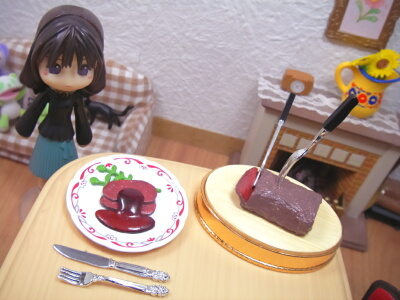 昨日の日記にも書いたビーフシチューと一緒に、何気なく買った代物↓ビーフシチューと同じく、牛肉を使ったイギリス料理の『ローストビーフ』です。個人的に牛肉はあまり食べない上に、肉はよく焼く派なので、素直に「おいしそう」と思えないのがちょっと残念(汗)食玩の出来自体は、ものすごく良いです!肉部分もリアルだし、ナイフとフォークの繊細な模様が素敵です☆
