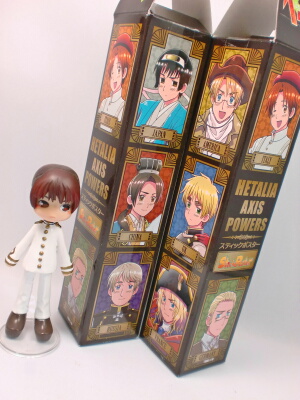 先日、高崎に用事があったそのついでにアニメイトへ最新ヘタリアグッズをチェックしに行きました(笑)前回行った時は、結構色々な新商品がそこそこ置いてあったのに、ほとんど売り切れ。しかも携帯ストラップ付きの映画前売り券も、とっくに売り切れになっていた事に、ヘタリア人気を痛感。油断ぜず、冬祭典で買っておいてよかったです。で、せっかく足を運んだので、一応新商品(?)のヘタリアスティックポスターという物を買ってみました。部屋にポスターを貼るシュミは無いので、どうしようかと思いましたが、絵柄がヘタキャラそれぞれの民族衣装やら上司の衣装やらを着ているものだったのですよ。2種類ランダムで入っているという、ある意味危険な物ですが、ヘタキャラはみんな好きだし、どんな感じなのか興味があったので、2本購入してしまいました。そして、家に帰ってからいざ開けてみたら・・・一本目はアメリカさんとロシアさんで、二本目がドイツさんと大本命の日本さんだったのです!ふおおおお(思わず吼える)個人的には中国さん、イギリスさん、フランスさんも欲しかったのですが、いきなりお目当て一等賞が出たので大満足。もう買わなくてもいいかなぁ(笑)せめて中身が見えれば欲しい物を揃えるのに・・・!